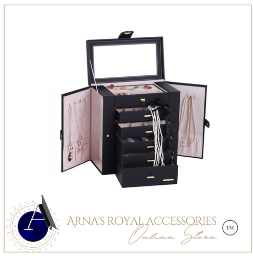 Luxury Rowling Leather Extra Large Black Jewellery Box Mirrored Cabinet