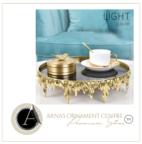"Arna Collection" Gold Tray's - Nordic Ginkgo Leaf Mirror Display Tray