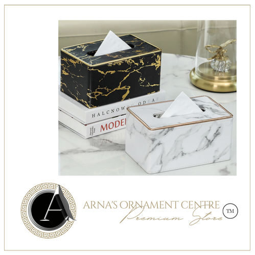 "Arna Lisa" Collection - Leather Tissue Box - Unique Stunning Marble Design