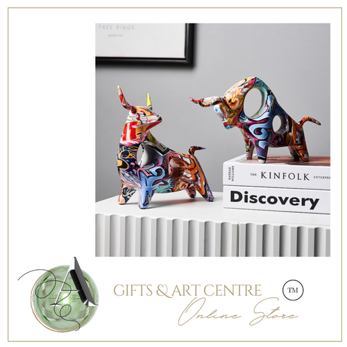 Nordic Sculpture Designer Bull Statue x2 Book Shelf Accessories - Office Home & Living