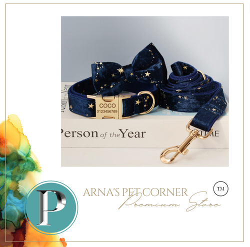 Luxury Pet Leash Engraved Name ID Tag + Collar + Bow - Free Engraving Personalise (all Sizes)