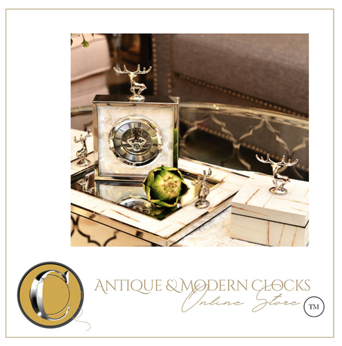 European Classical Silver Deer Table Clock Creativity Silver Iron Frame Marble Texture Vintage Clocks Office Desktop Ornaments