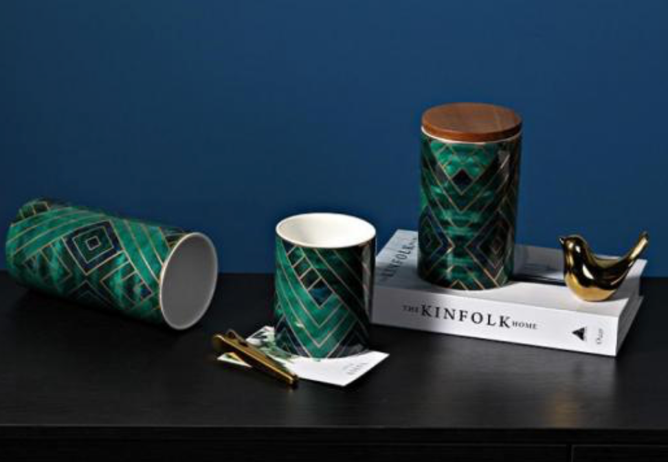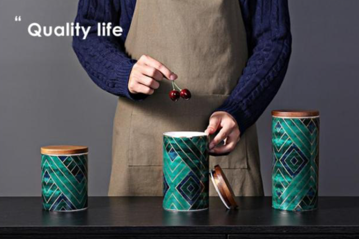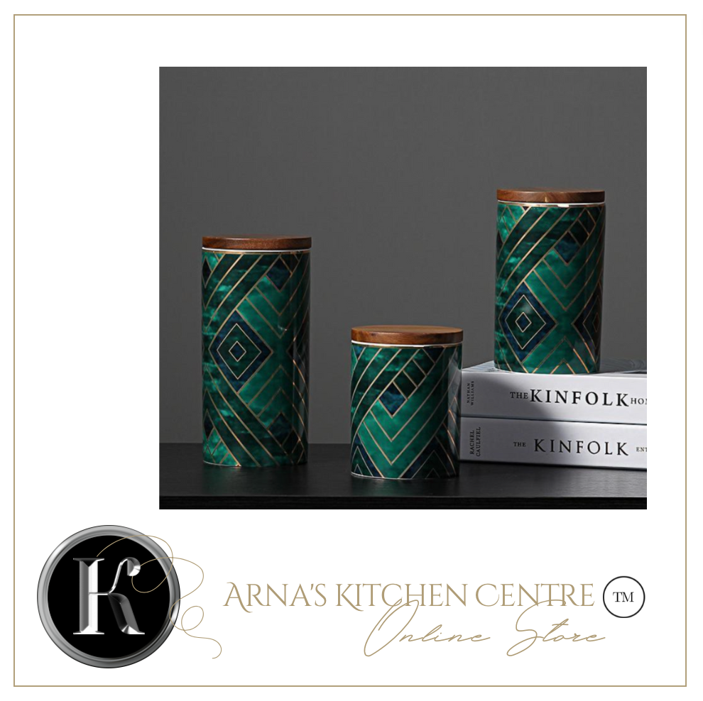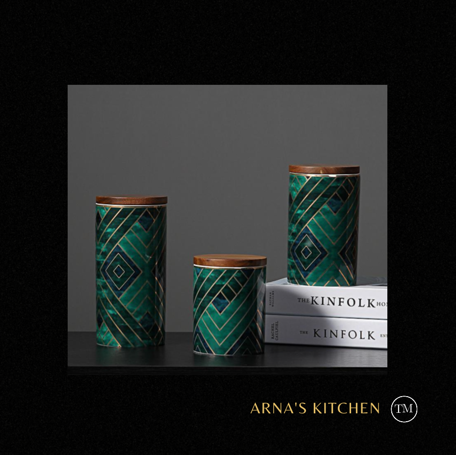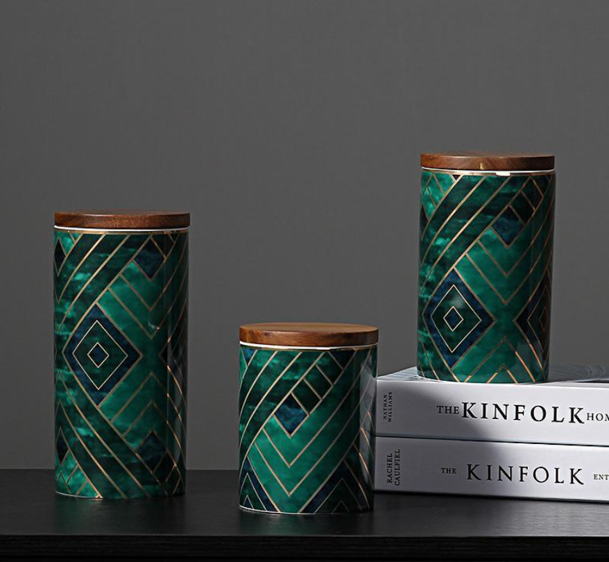 Royal Green/Blue/Gold Pattern Ceramics Storage Bottles/Containers Sealed Jars and Bamboo Lid.