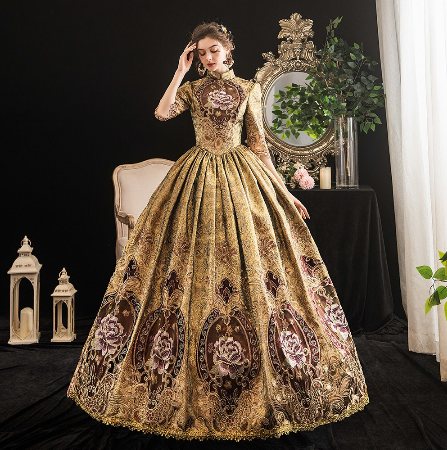 Rococo Baroque Marie Antoinette Ball Dresses 18th Century Renaissance Dress Historical Period Victorian Golden Gown