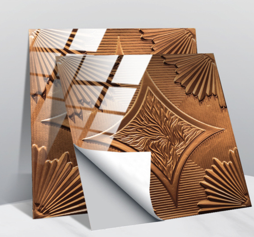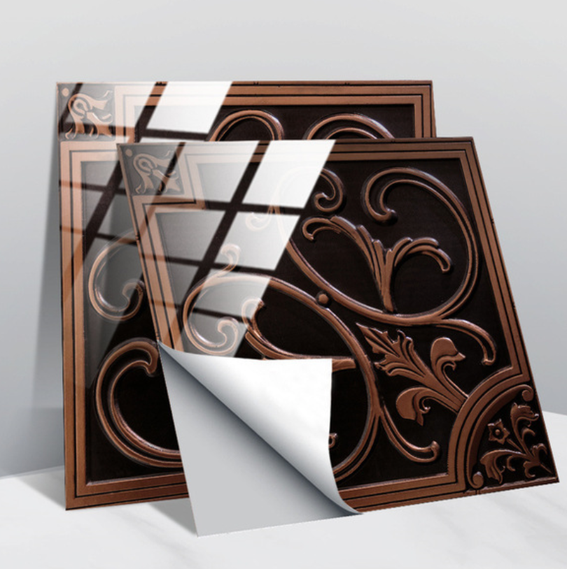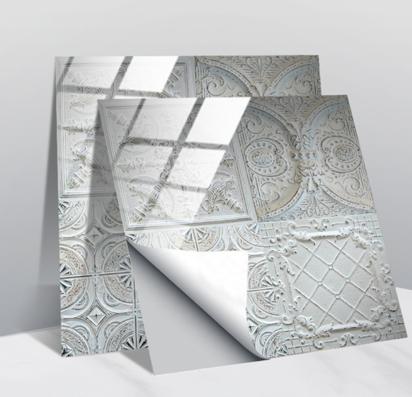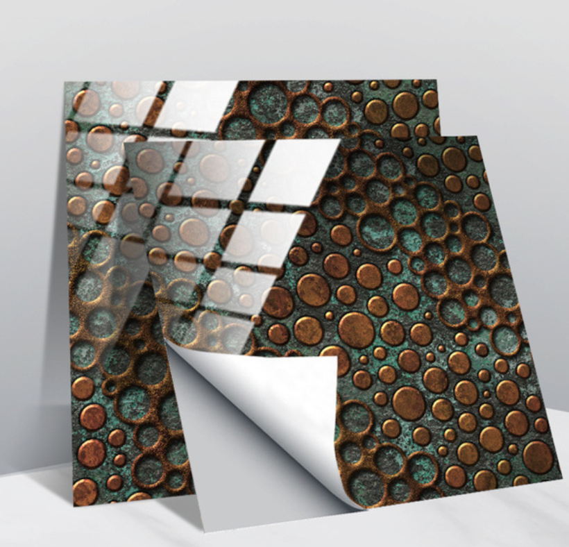 Quality Crystal Film Covered Retro Metal Pattern Ceramic Tile Self Adhesive Waterproof, Easy Clean and Easy to Apply