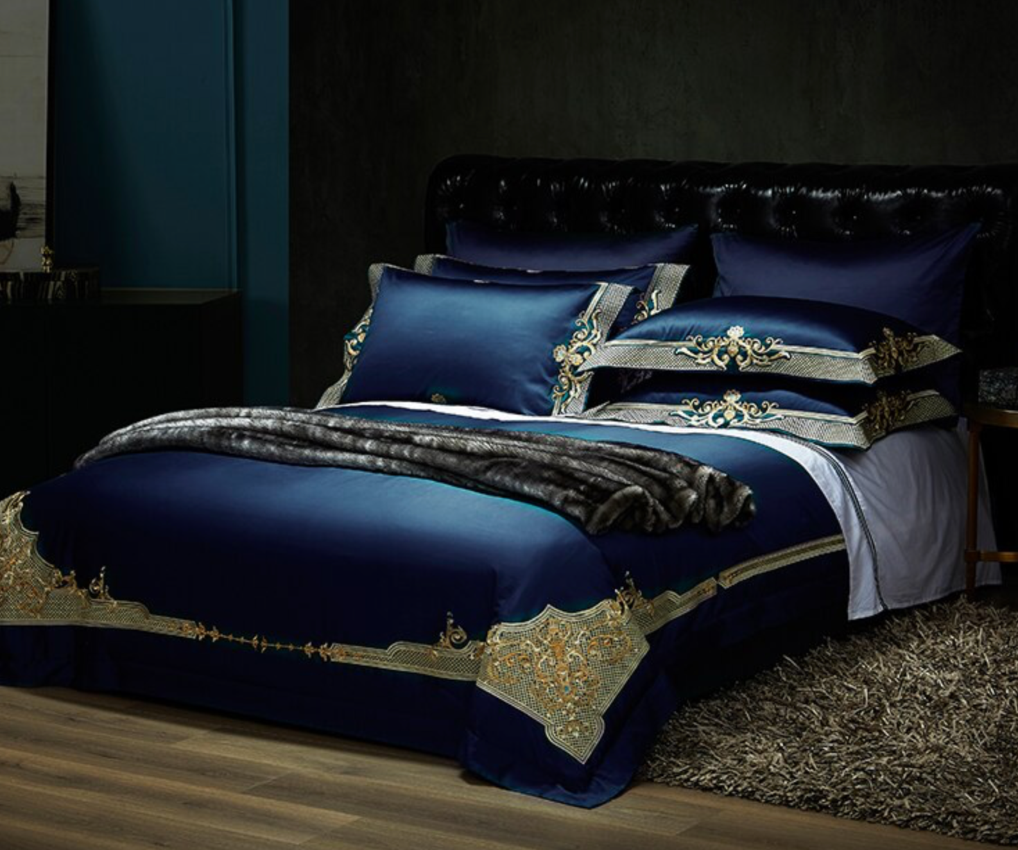 Egypt cotton Luxury Royal Golden embroidery Bedding Set - King Size Duvet Cover Set Bed Sheet Pillowcases bed linen King Size 4Pcs