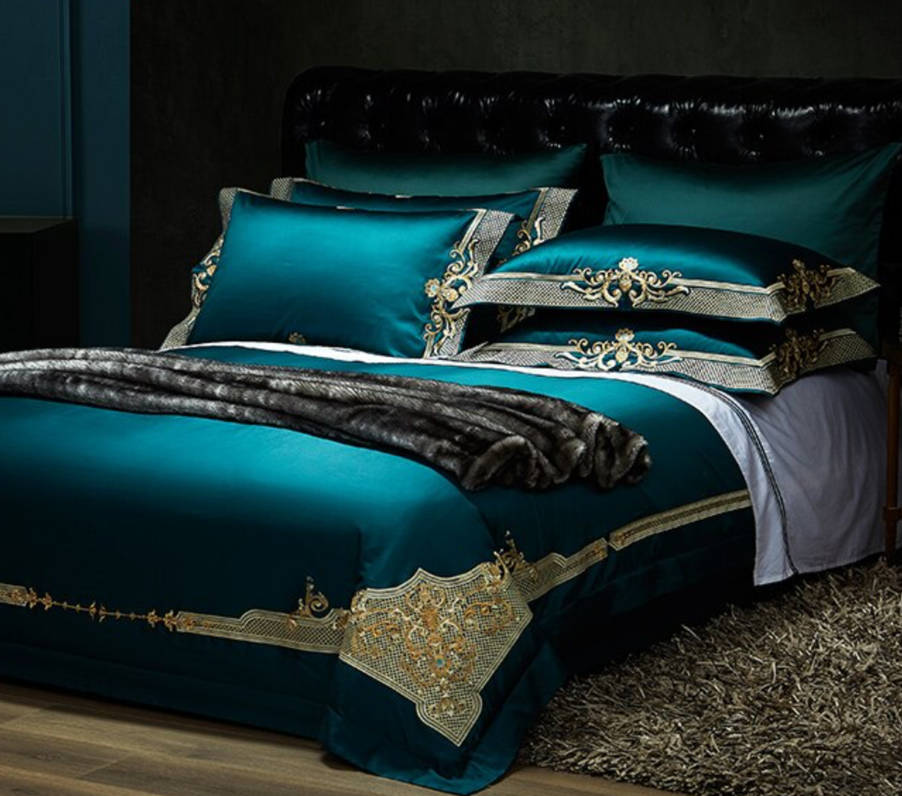 Luxury 600TC Eqyptian Cotton Classic Exquisite Bedding Set Embroidery Duvet Cover Bed Sheet Pillowcases King Size 4 Piece