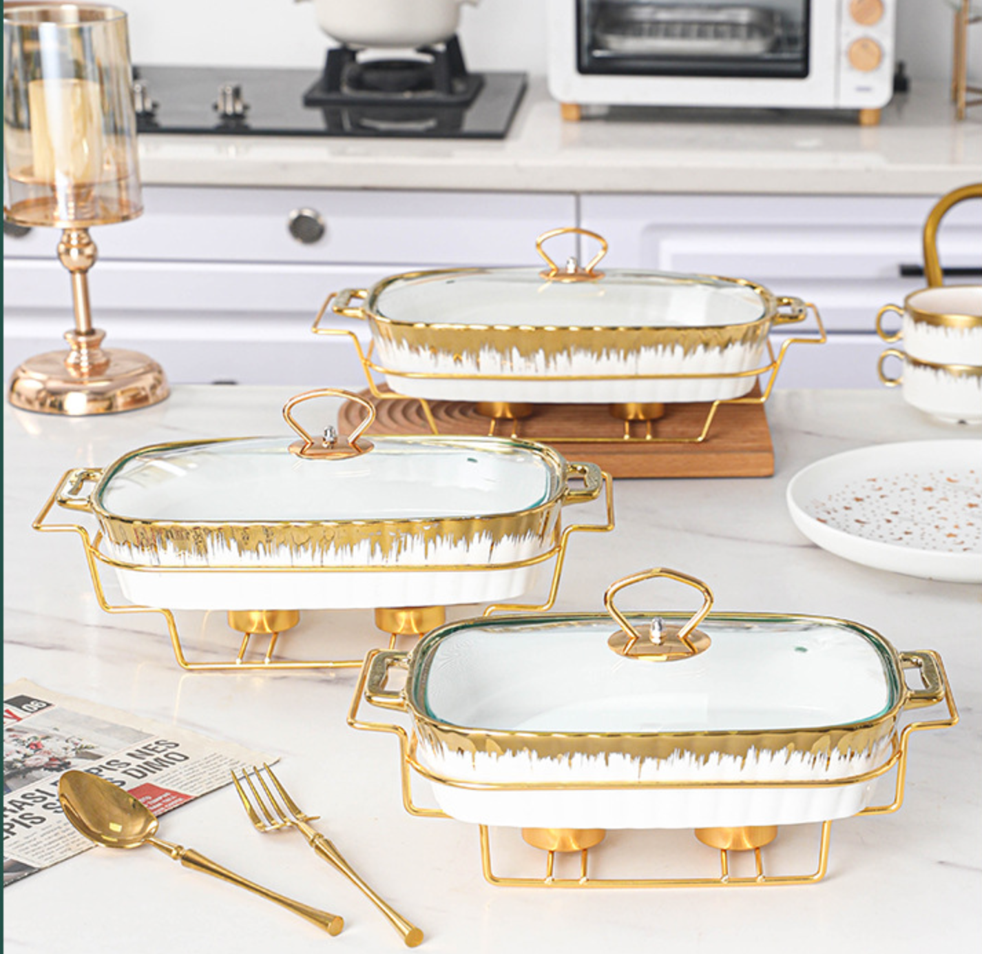 Ceramic Stock Pot + Cover, Casserole Pot Set + Rack x3 (all 3 Dishes)