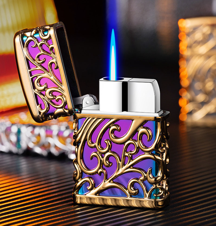 Creative Hollow Pattern Windproof Jet Lighter Cool Metal Body Blue Flame Refillable Butane Gas Torch Lighters
