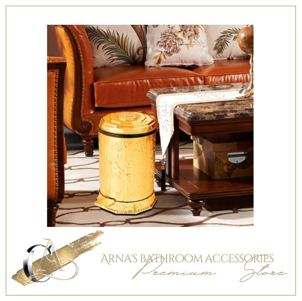 Luxury Pedal Golden Metal 6L Trash Rubbish Bin
