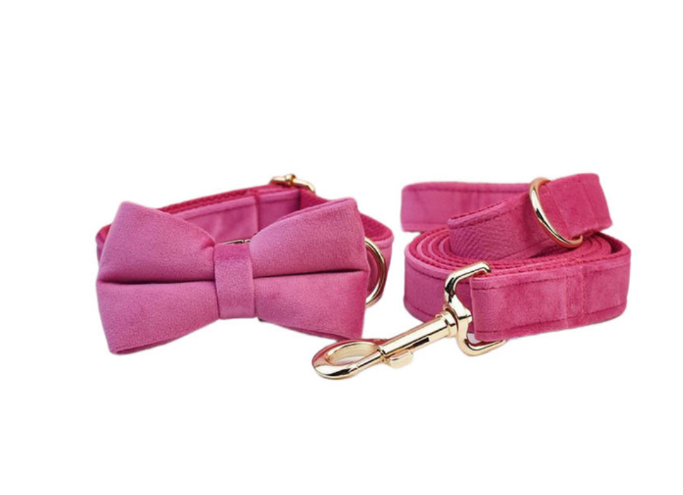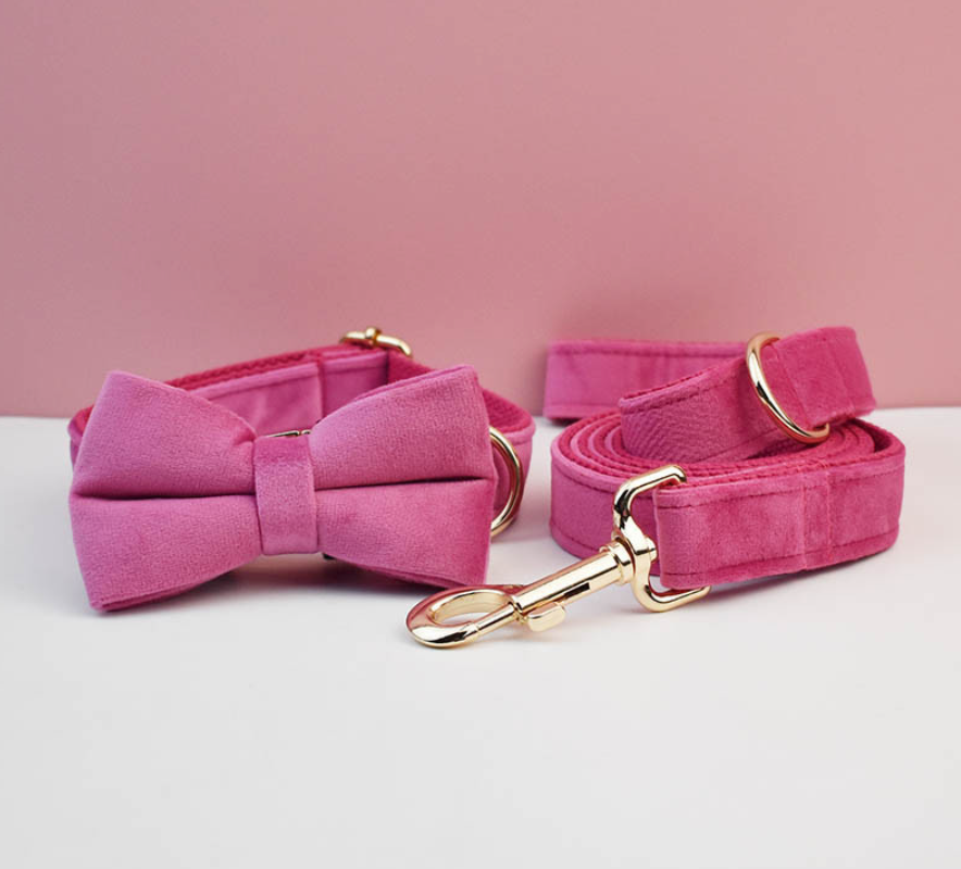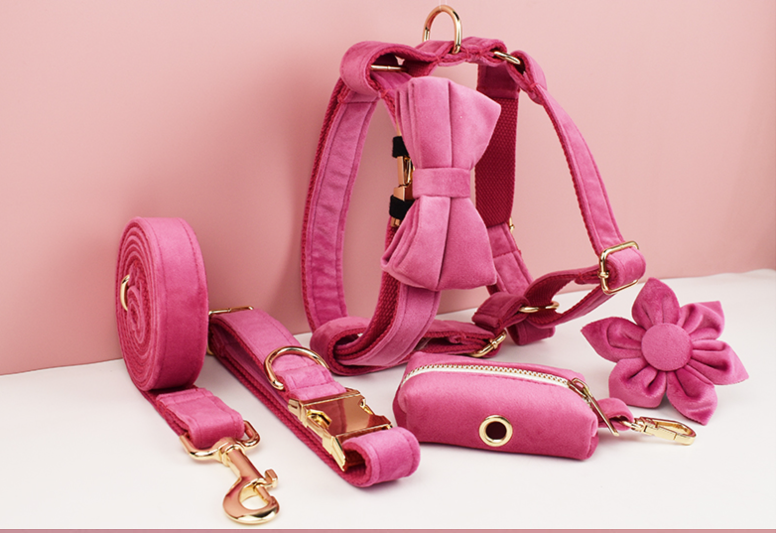 Luxury Pet Leash Engraved Name ID Tag + Collar + Bow/Flower + Engraving for free + Harness + Poop Bag
