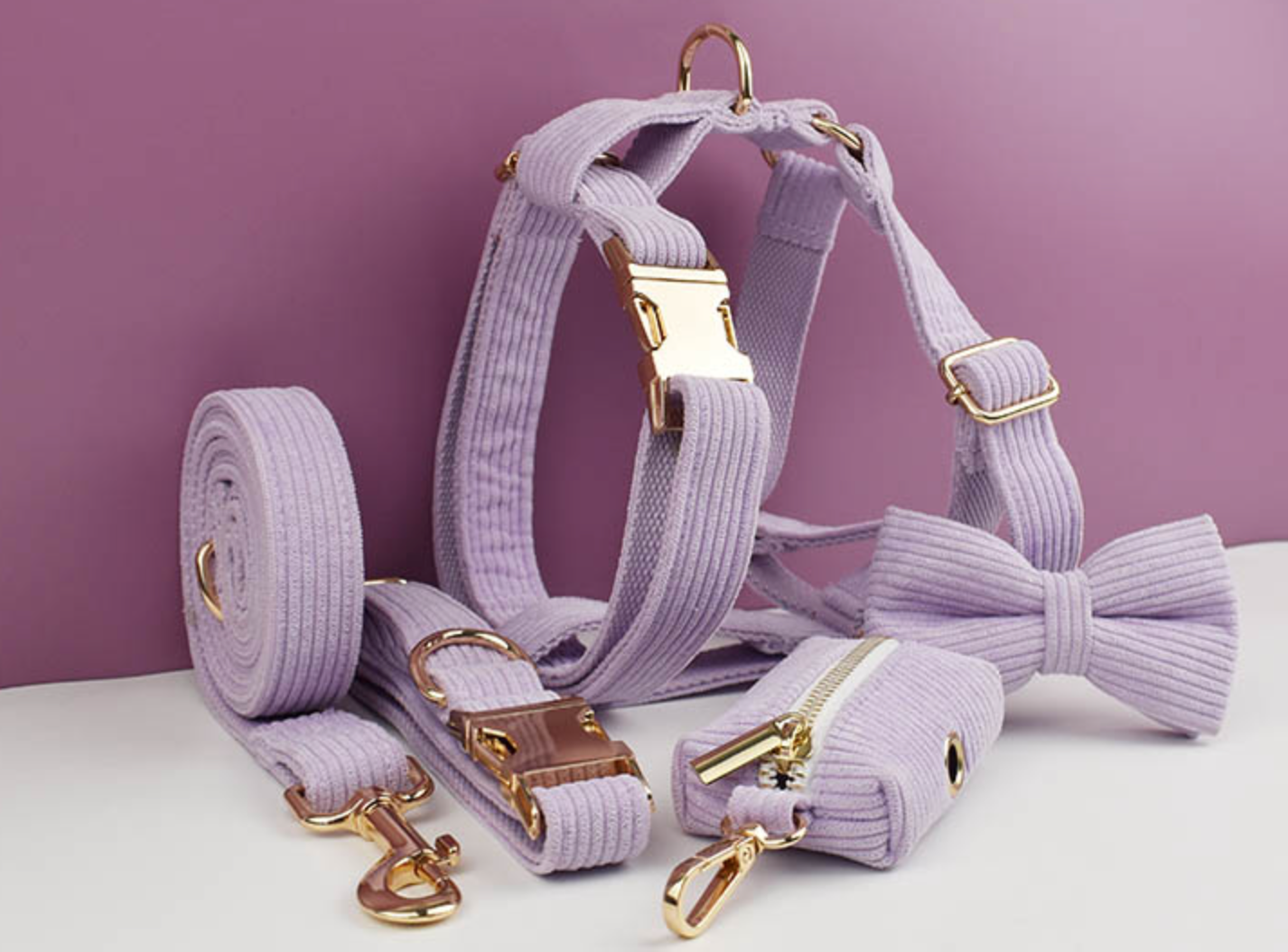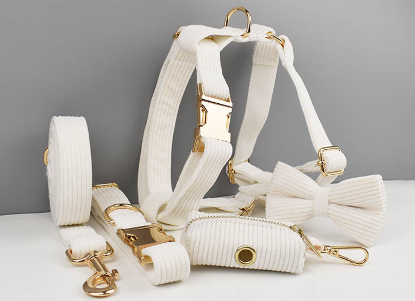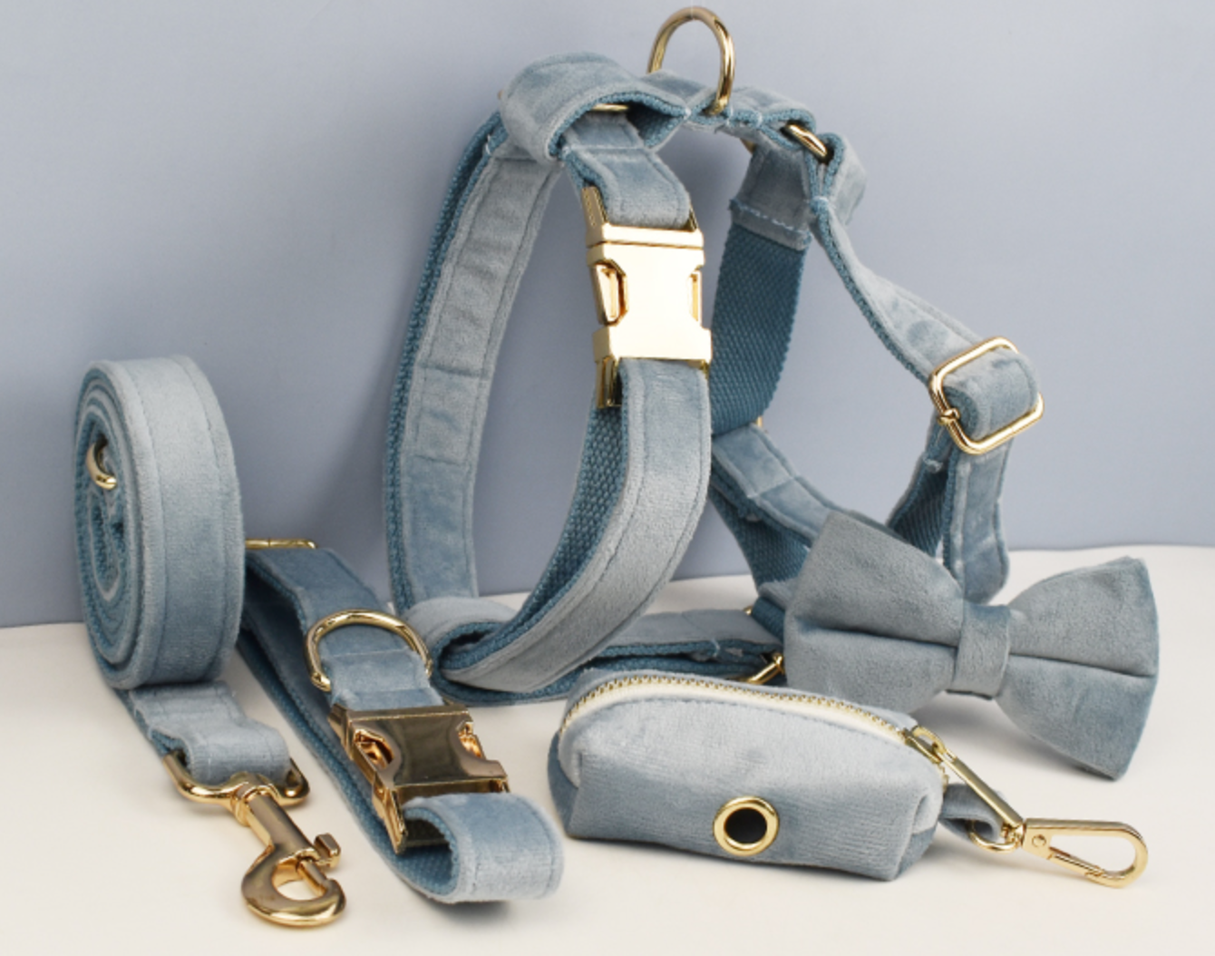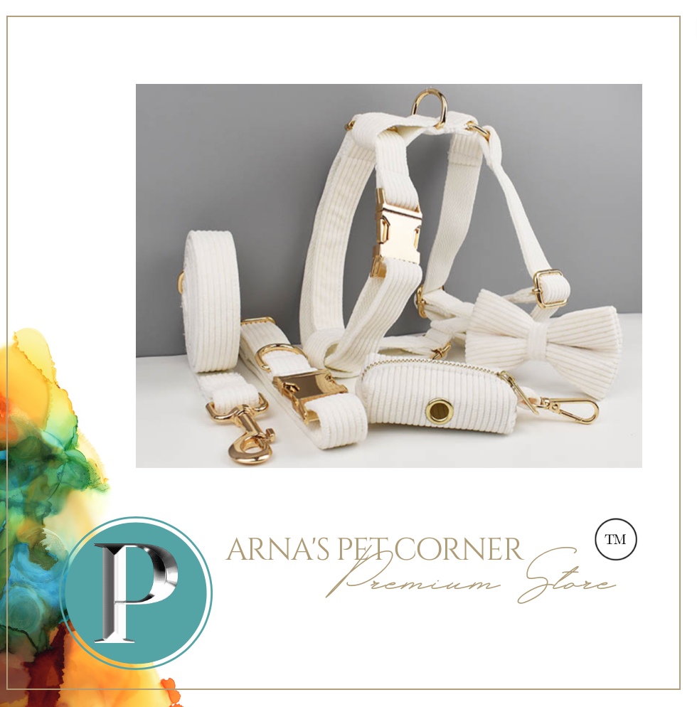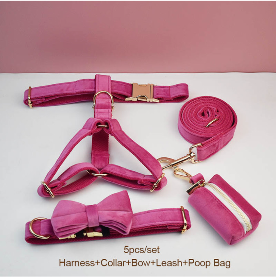 Luxury Pet Leash Engraved Name ID Tag + Collar + Bow Tie + Engraving for free + Harness + Poop Bag
