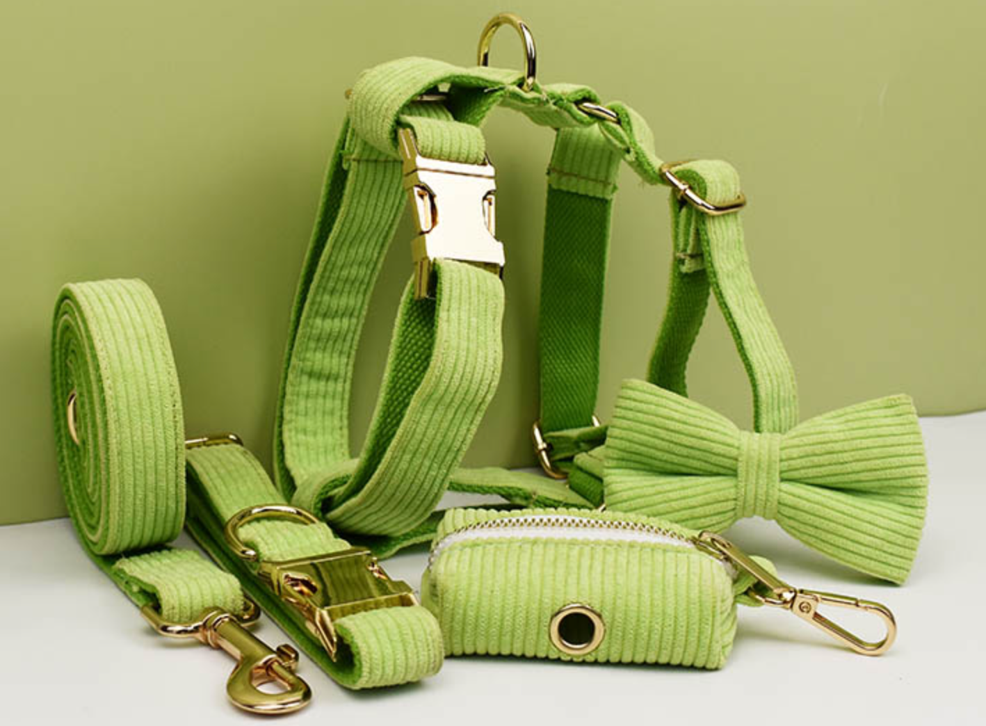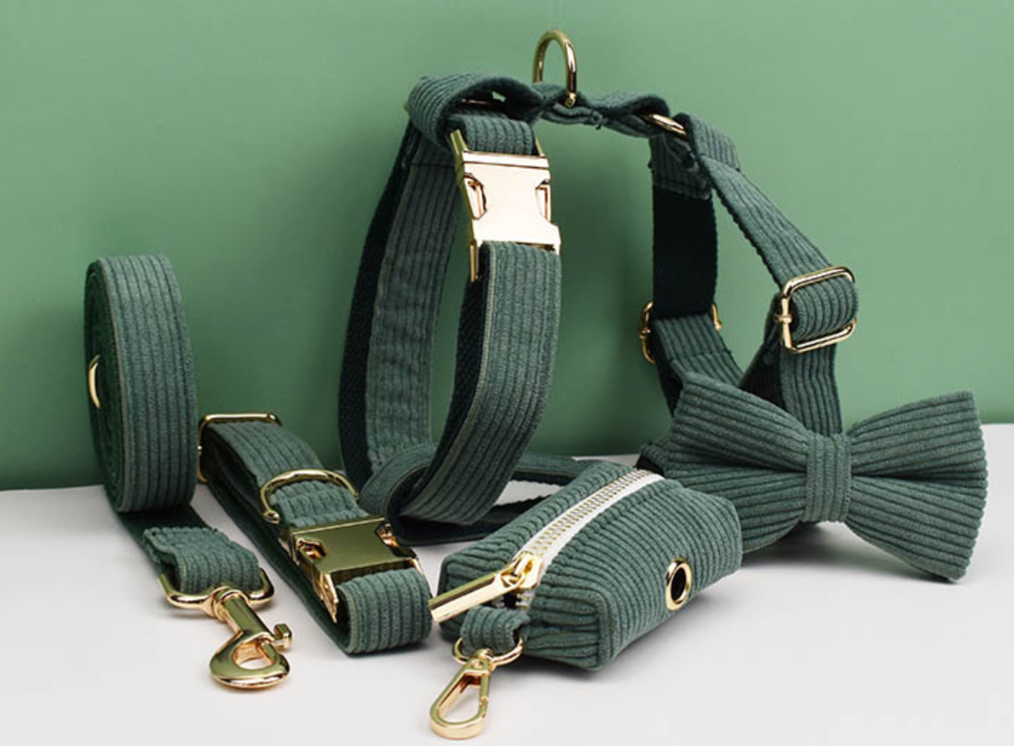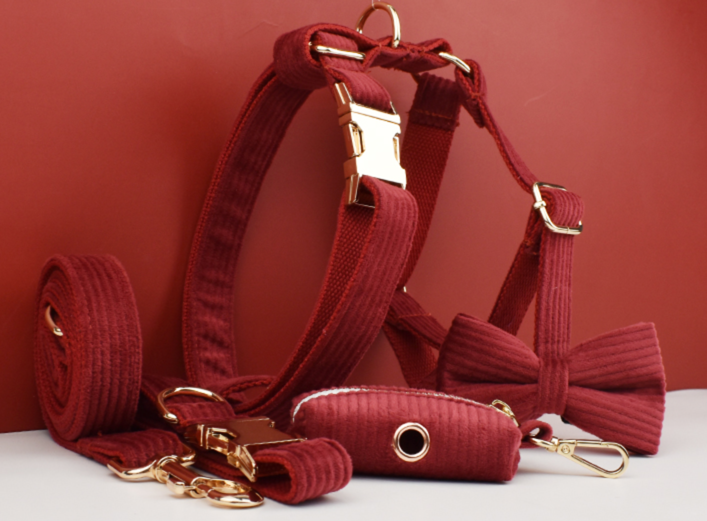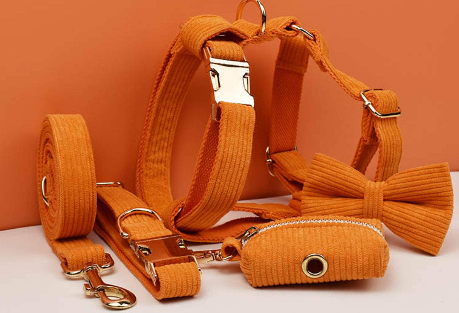Luxury Pet Leash Engraved Name ID Tag + Collar + Bow Tie + Engraving for free + Harness + Poop Bag