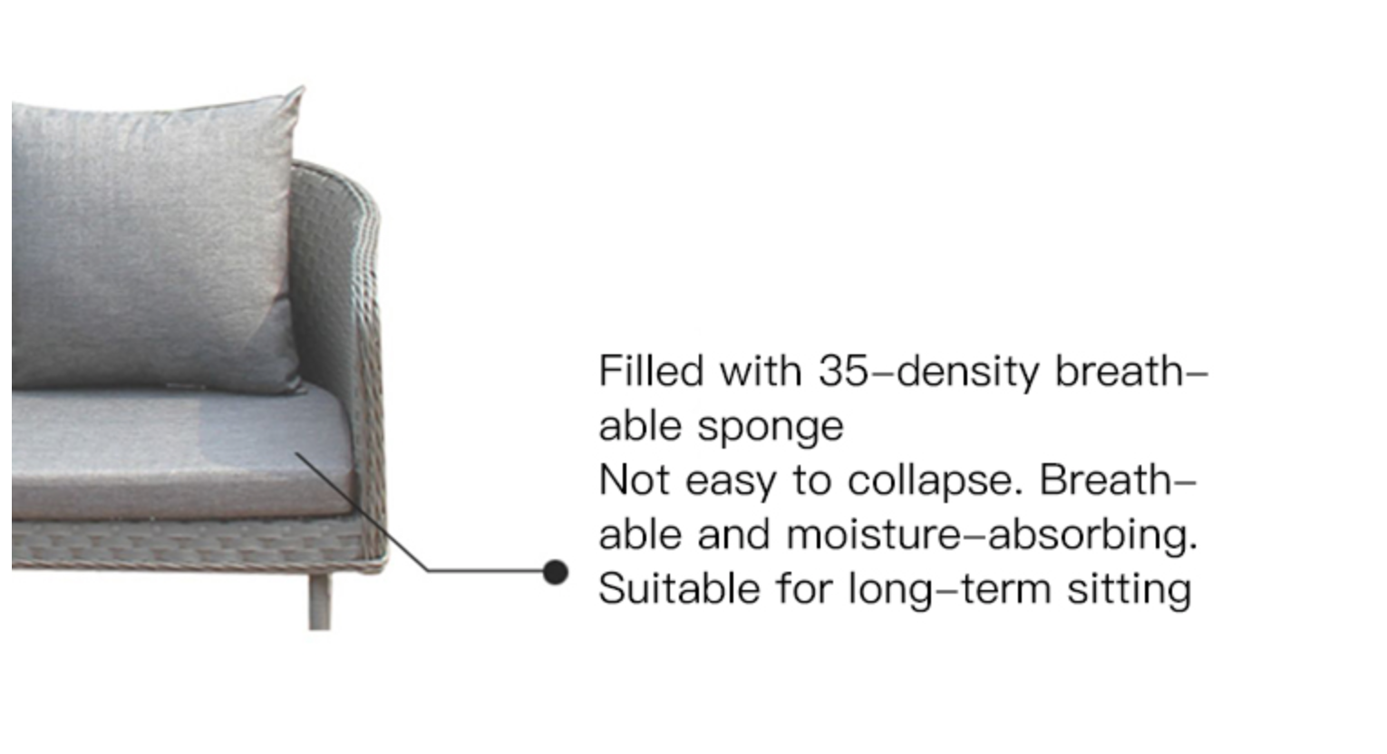 Materials: Aluminium Rust Free, Rattan Woven Material, Cotton, Waterproof, (Powder Coated)