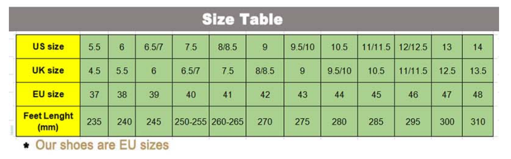 Sizes 38, 39, 40, 41, 42, 43, 44, 45, 46, 47, 48