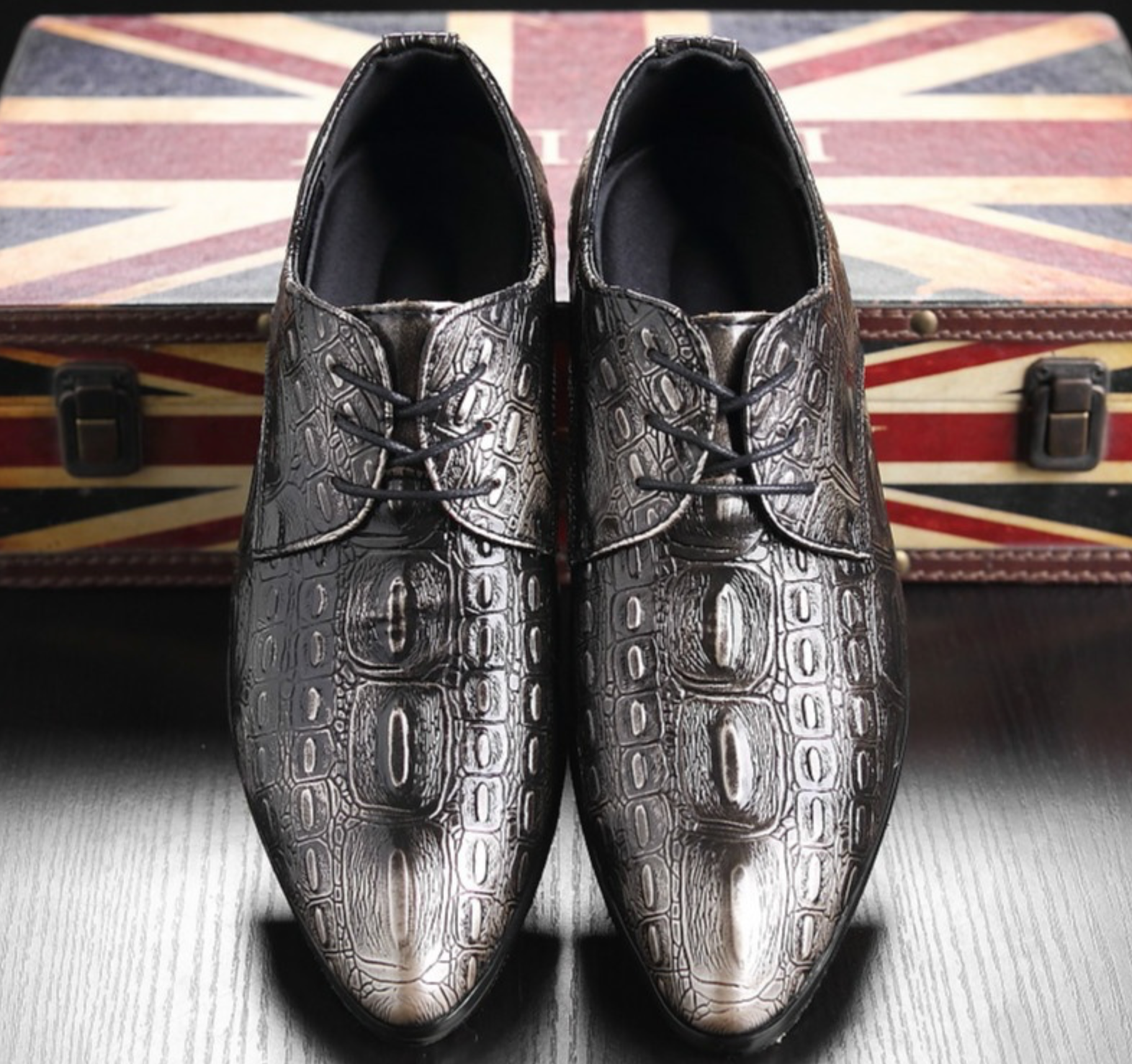 Mens Leather Carved Business Pointed Toe Shoes - Silver or Burgundy