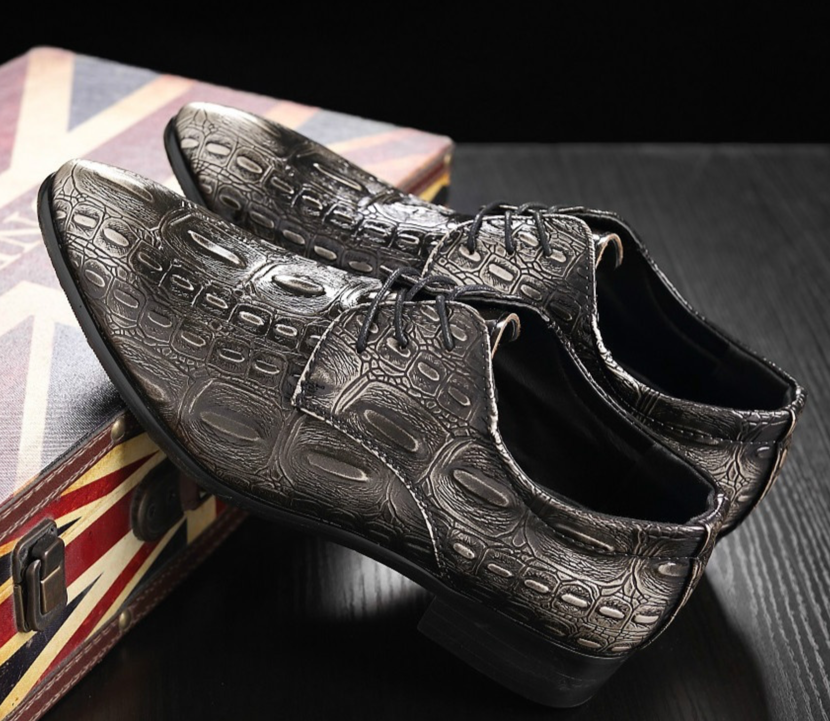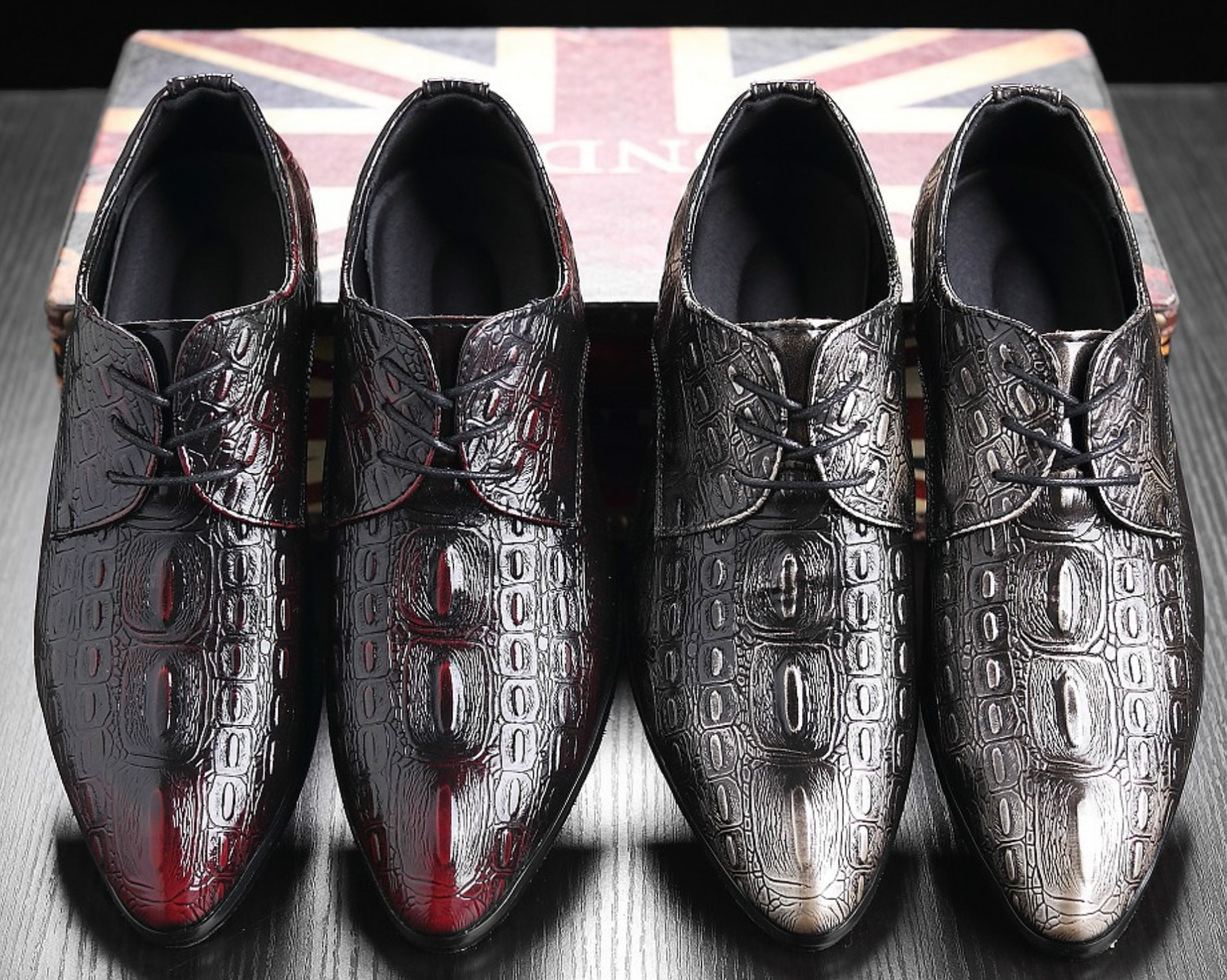 Mens Leather Carved Business Pointed Toe Shoes - Silver or Burgundy