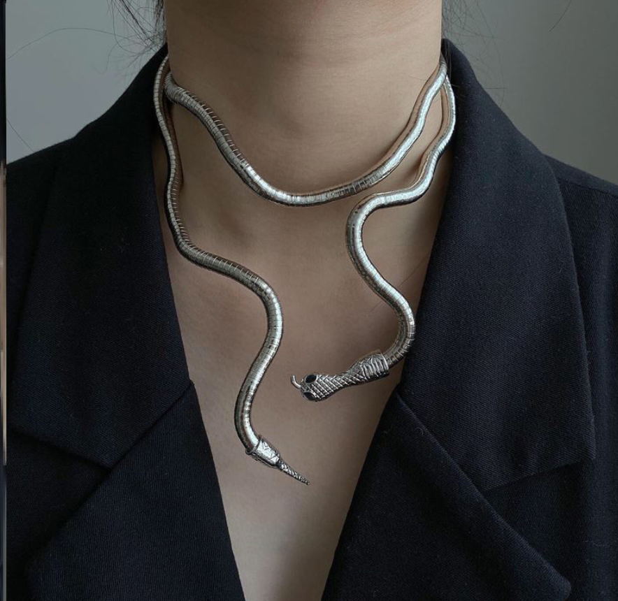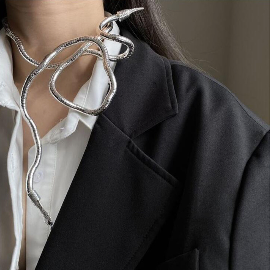 Multilayer Metal Alloy Gold Black Colour Cool Bendy Snake Necklace Bracelet for Women Men Chunky