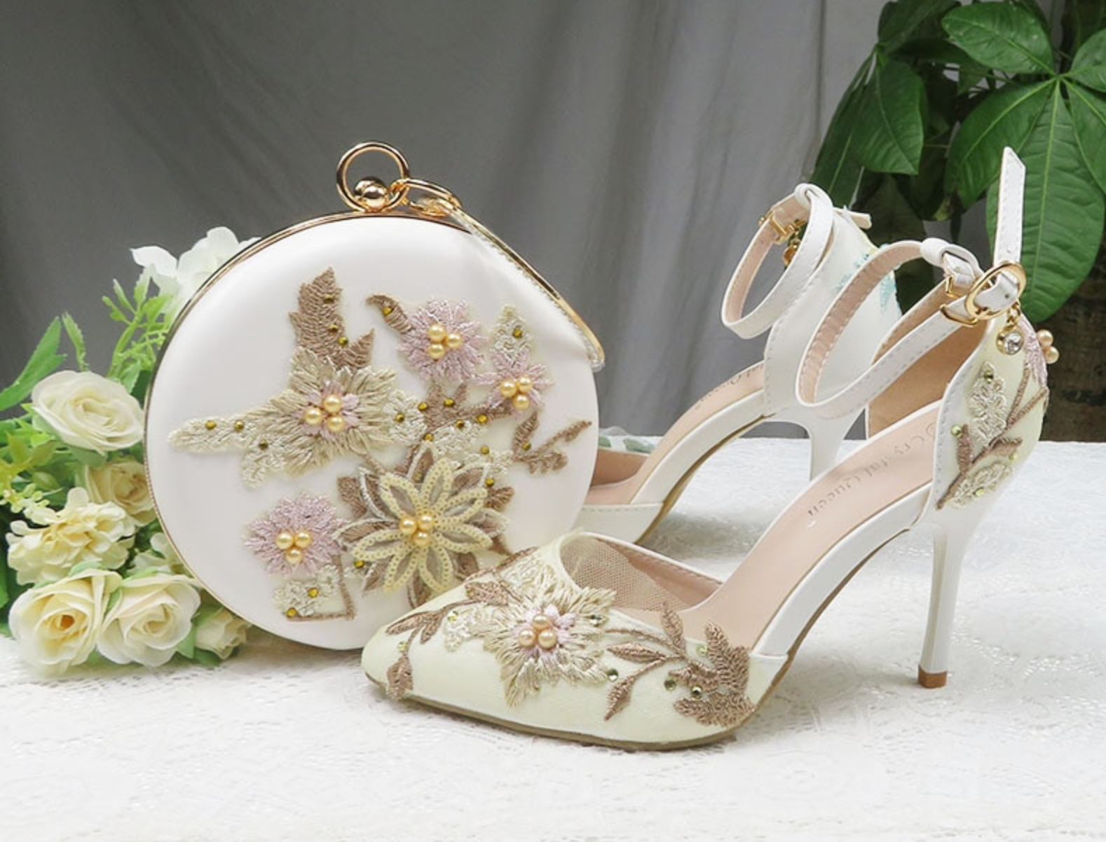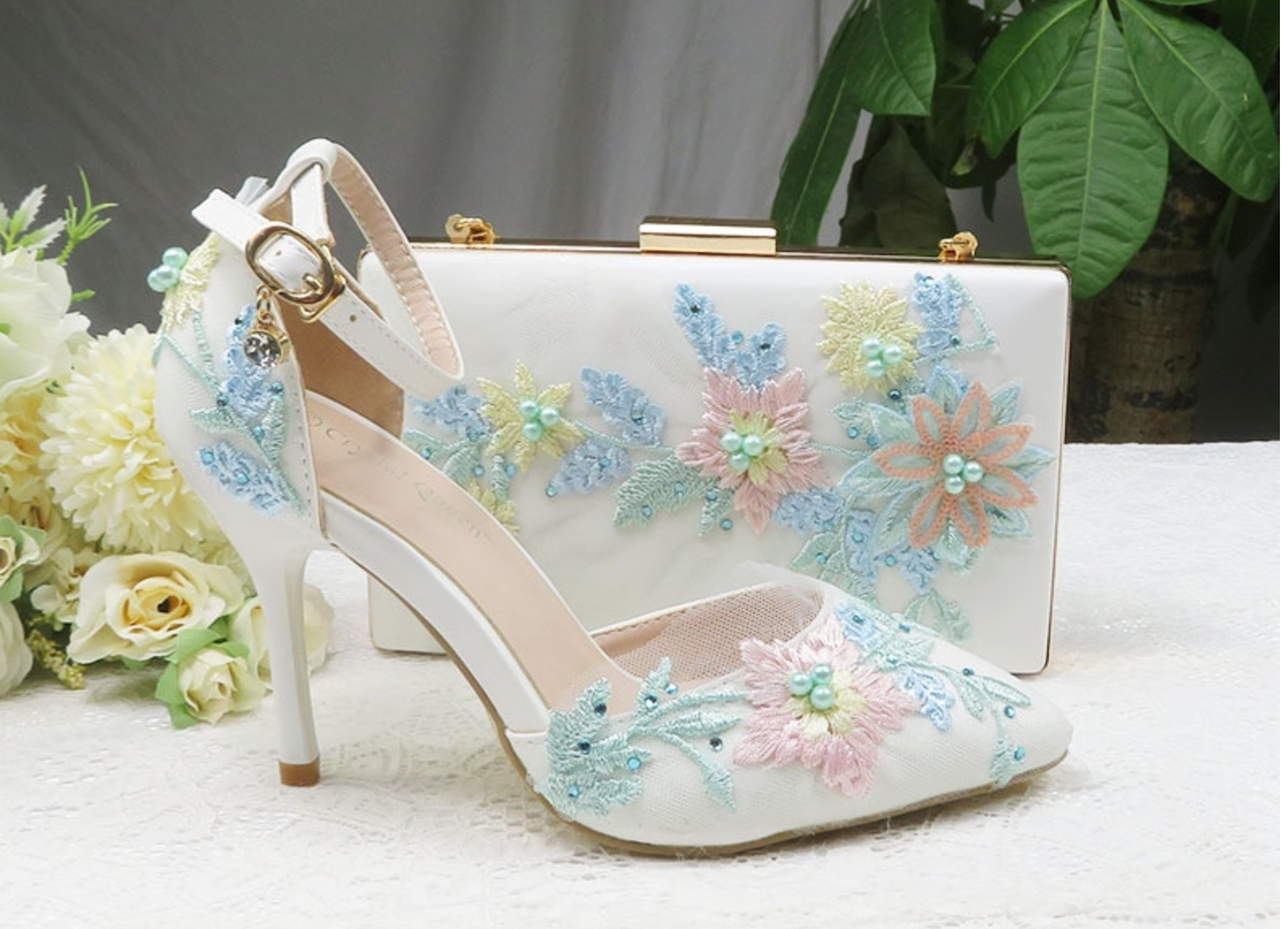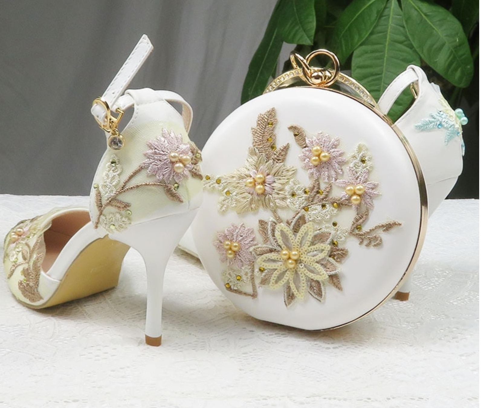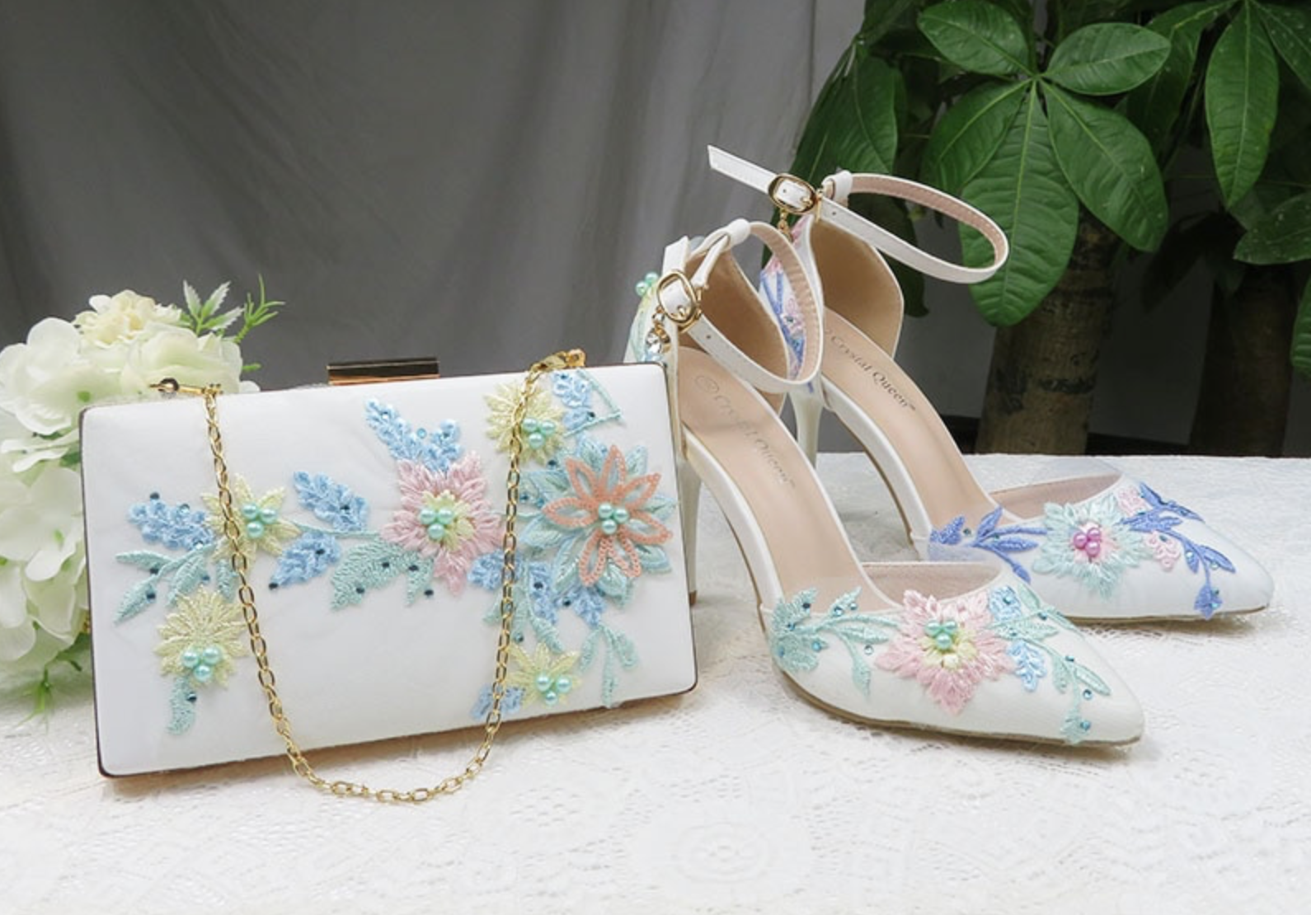 Limited Edition - Luxury Lace Shoe Set - Many Colours & Sizes (Shoe + Clutch)