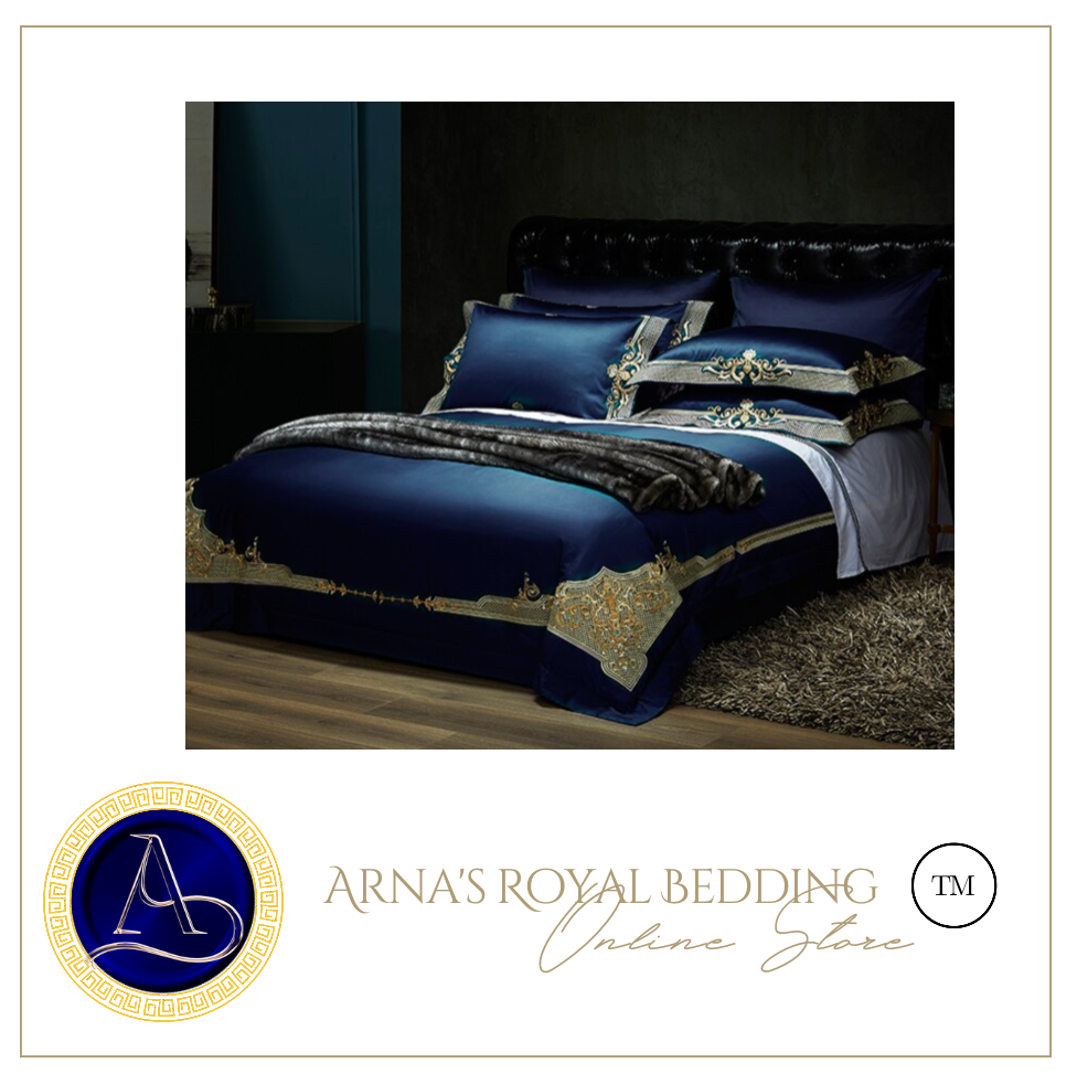 Egypt cotton Luxury Royal Golden embroidery Bedding Set - King Size Duvet Cover Set Bed Sheet Pillowcases bed linen King Size 4Pcs