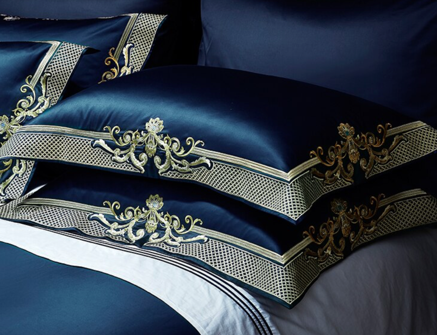 Luxury 600TC Eqyptian Cotton Classic Exquisite Bedding Set Embroidery Duvet Cover Bed Sheet Pillowcases King Size 4 Piece