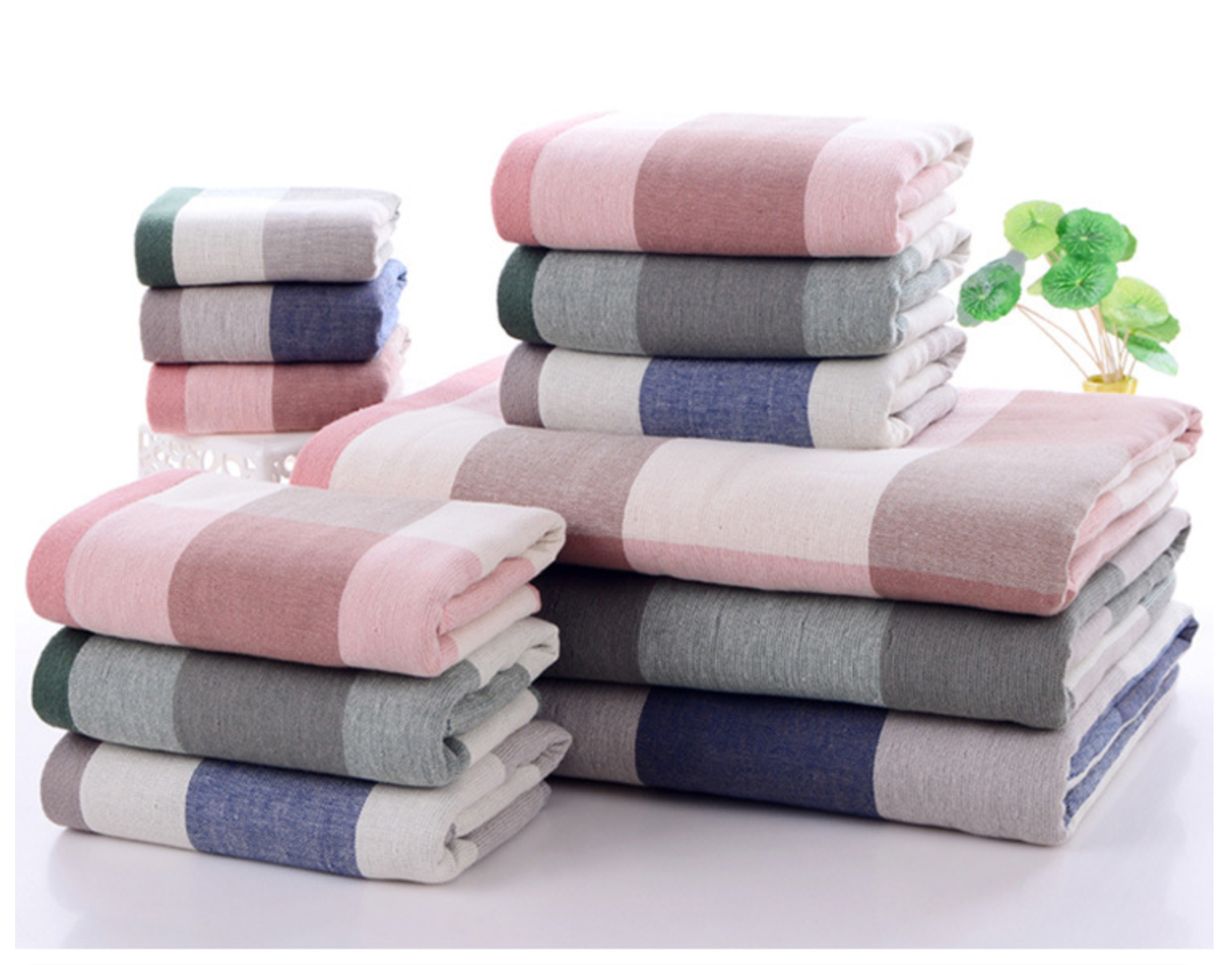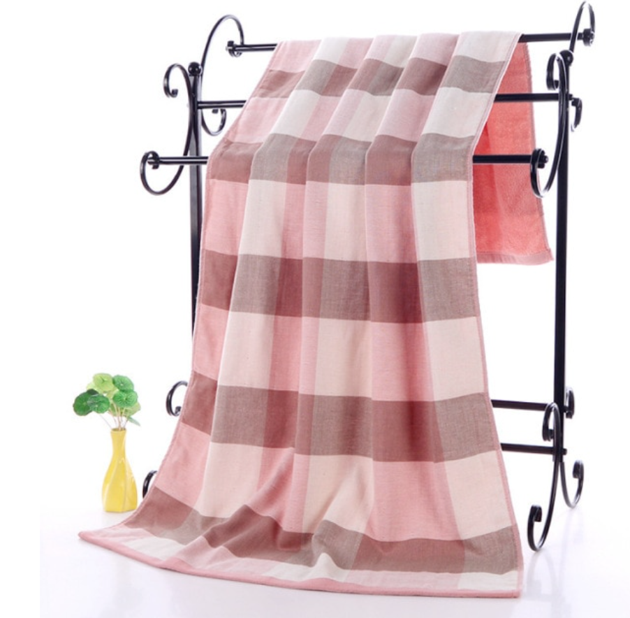 Luxury Tartan British Large Grid Adult Gauze Bath Towel, One Side Gauze and One Side Terry Couple Beach Towel